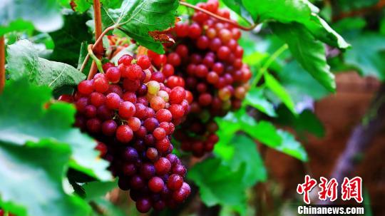 中新网乌鲁木齐6月5日电(胡国凯)因独特的气候和自然环境,新疆其他地区葡萄刚刚开花挂果,位于天山南麓的托克逊县已进入瓜果飘香的季节,该县夏镇南湖村董双双农业合作社的大棚葡萄开始成熟上市。