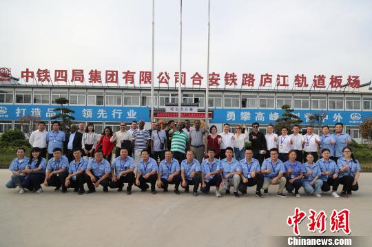 6月12日,来自埃塞俄比亚、马拉维、哥斯达黎加、苏里南、安哥拉等驻华大使、刚过(金)驻华参赞以及在华留学生等,在中铁四局一公司庐江轨道板场项目部与中铁四局员工合影。 韩新亮 摄